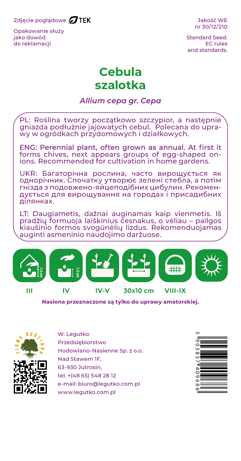 Cebula o wszechstronnym zastosowaniu - może być zbierana w postaci szczypioru, jako materiał rozmnożeniowy na przyszły rok, czy też jako dojrzałe cebule. Nasiona najlepiej wysiewać wczesną wiosną, rozmieszczając je w rzędach co 30 cm. Jesienią zbiera się pojedyncze cebulki, z których większe mogą być przeznaczone do spożycia, a mniejsze można wykorzystać do rozmnażania w przyszłym sezonie.