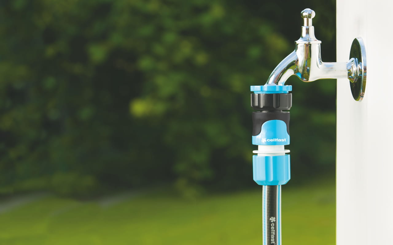 Szybkozłącze z funkcją STOP z serii Ergo pozwala na szybkie i wygodne podłączanie urządzeń do węża o średnicy 13 mm (1/2") lub 15 mm (5/8"). Dzięki zastosowaniu funkcji „stop”, po odłączeniu zraszacza do węża nie będzie z niego lecieć woda, można bez problemu zmienić zraszacz. Klasyczny, prosty montaż szybkozłączki na końcówce węża. Wydłużony mechanizm zacisku w tej serii pozwala na precyzyjne połączenie z wężem. Szybkozłącze wykonane zostało z tworzywa PC/ABS, a elementy mechanizmu zaciskowego ze stali nierdzewnej. Dzięki zastosowaniu systemu SAFETOUCH™, zapewniono pewny chwyt i wygodę użytkowania, a także zabezpieczenie przed przypadkowymi uszkodzeniami.